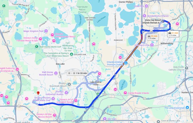 Given Vista Kay’s proximity to all major theme parks, restaurants, and shops, it is probably the best location for renting a vacation rental in the central Florida area, not to mention it is just 12.7 miles away from Animal Kingdom and with easy Highway access is just a 15-minute drive.
